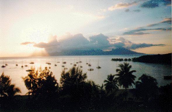 Sunset over Mo'orea, French Polynesia (from island of Tahiti) (March 97)